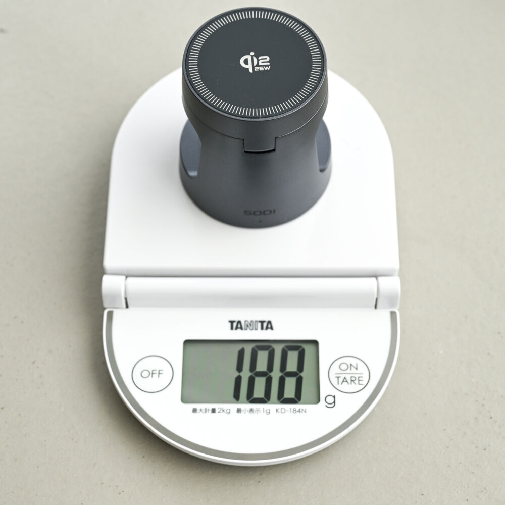 重量は約188gとスマホレベルなので、基本は卓上想定だと思いますが、持ち運びも全然いけます。