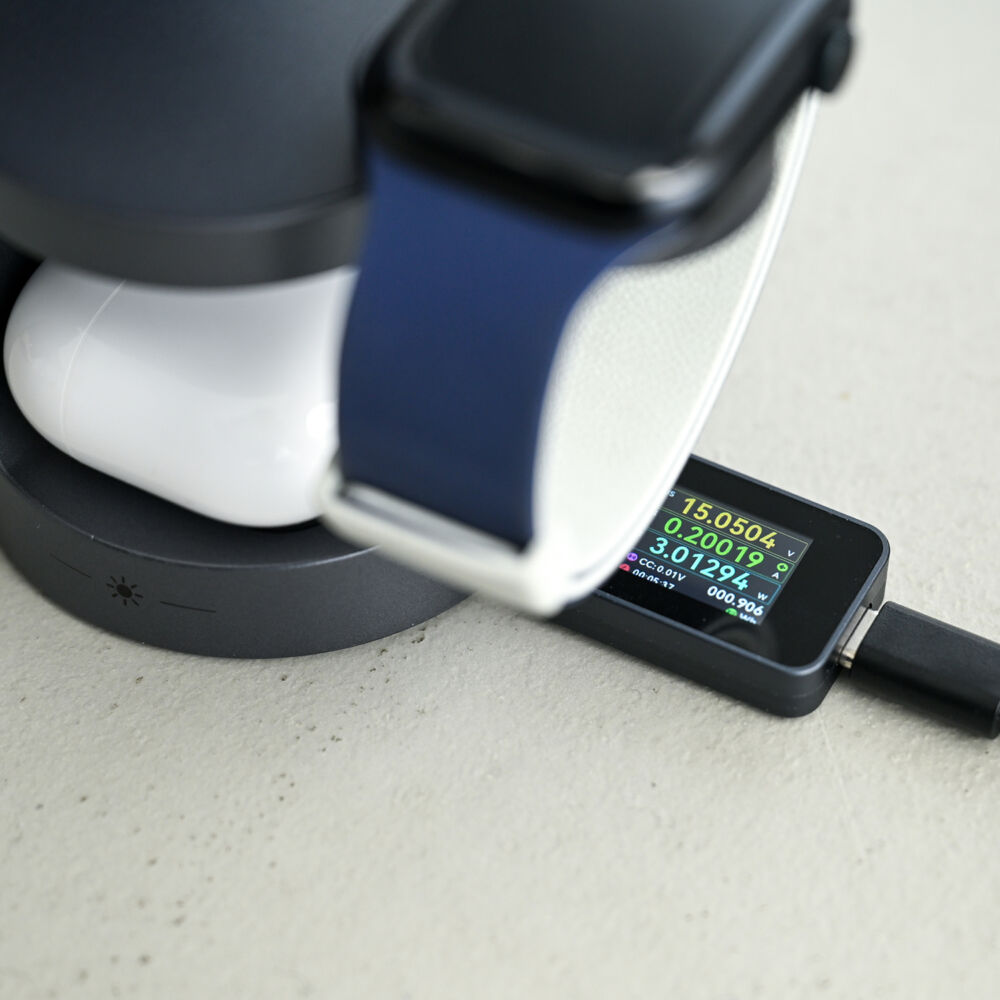 - Qi2 25W対応スマホ・Qi対応イヤホン・Apple Watchの同時充電可能
