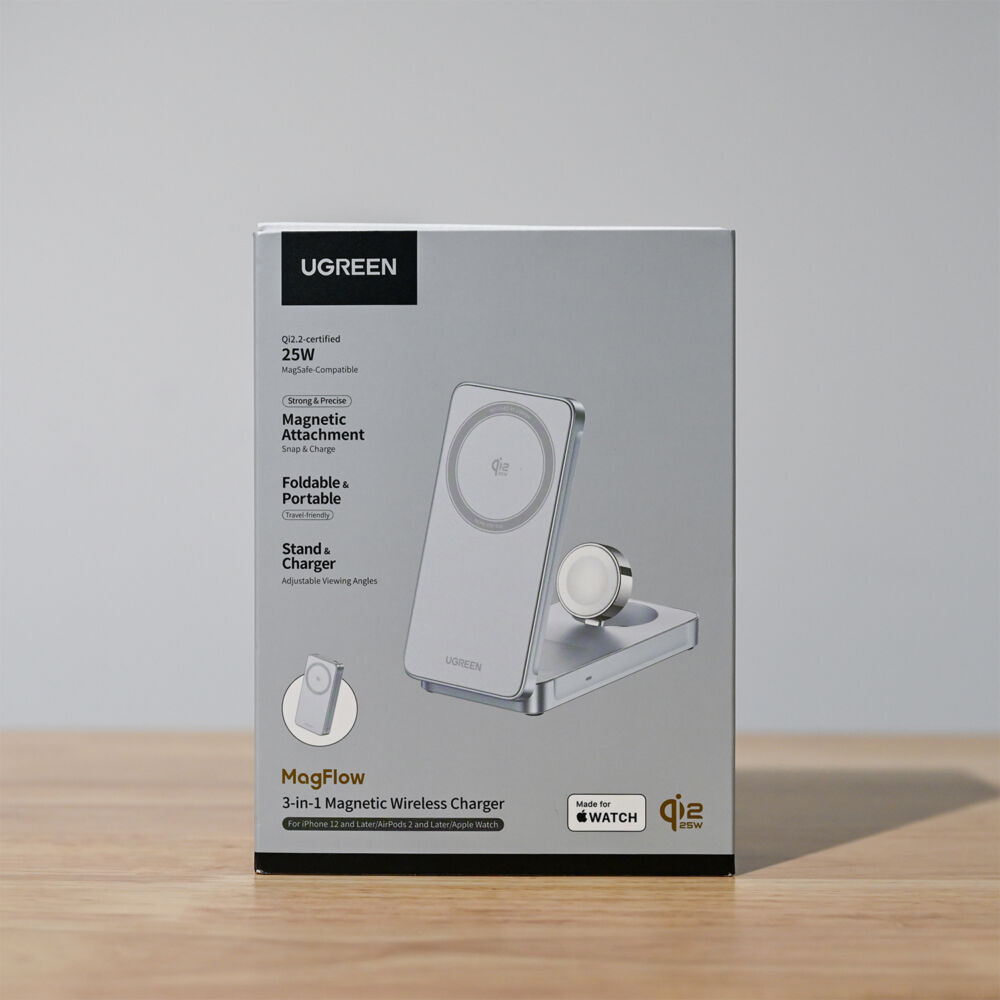 そこで本記事はUGREEN MagFlow 3-in-1 マグネット式ワイヤレス充電器 25Wをレビューしていきます。