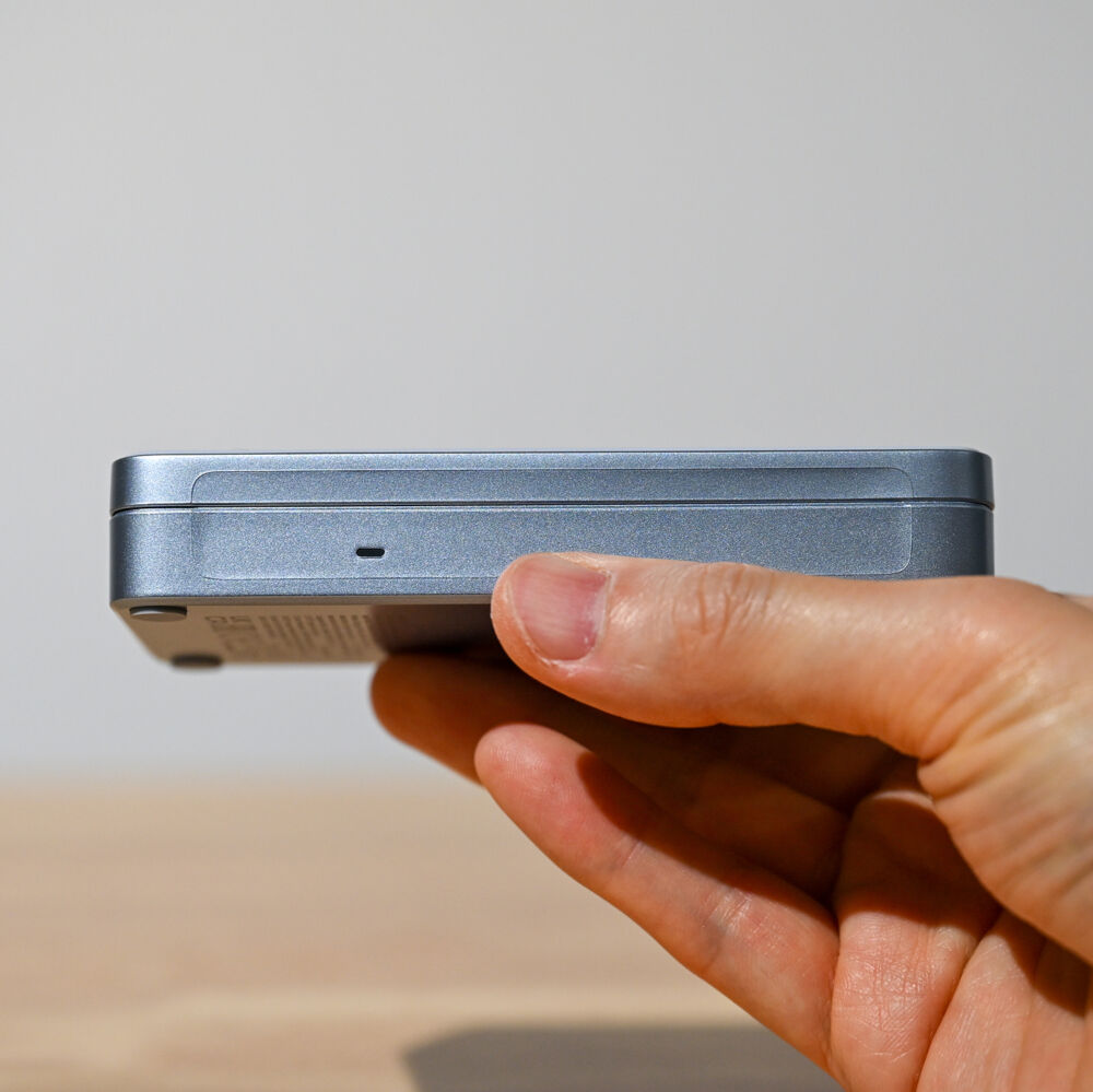 同社のQi2 25Wシリーズはいずれも淡いペールブルーで、本機も同カラー。この色めっちゃ好き。