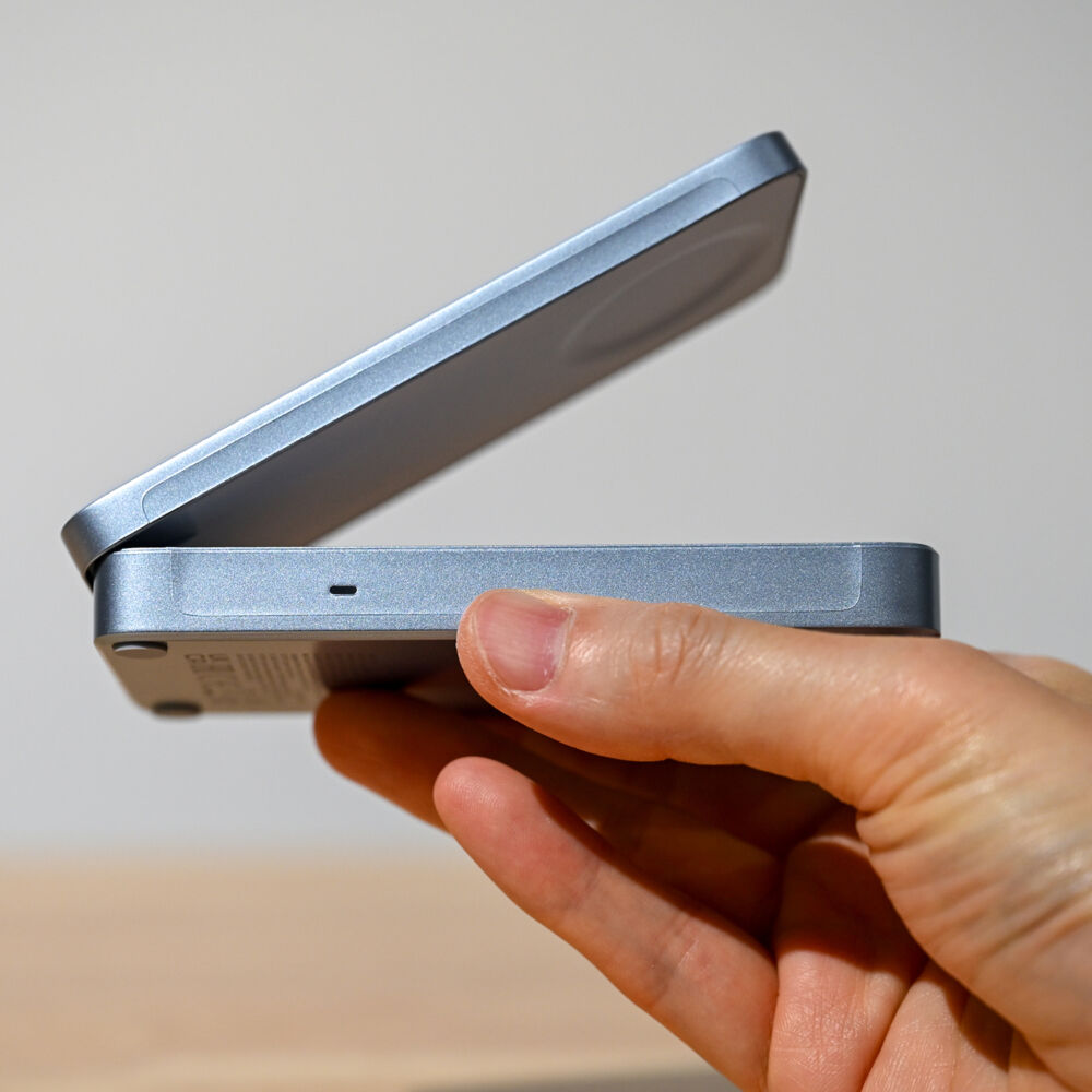 UGREENのQi2 25Wシリーズの中でも秀逸な一品で、折りたたんだ状態ではスマホ以下のサイズと200gちょっとで携帯性抜群。