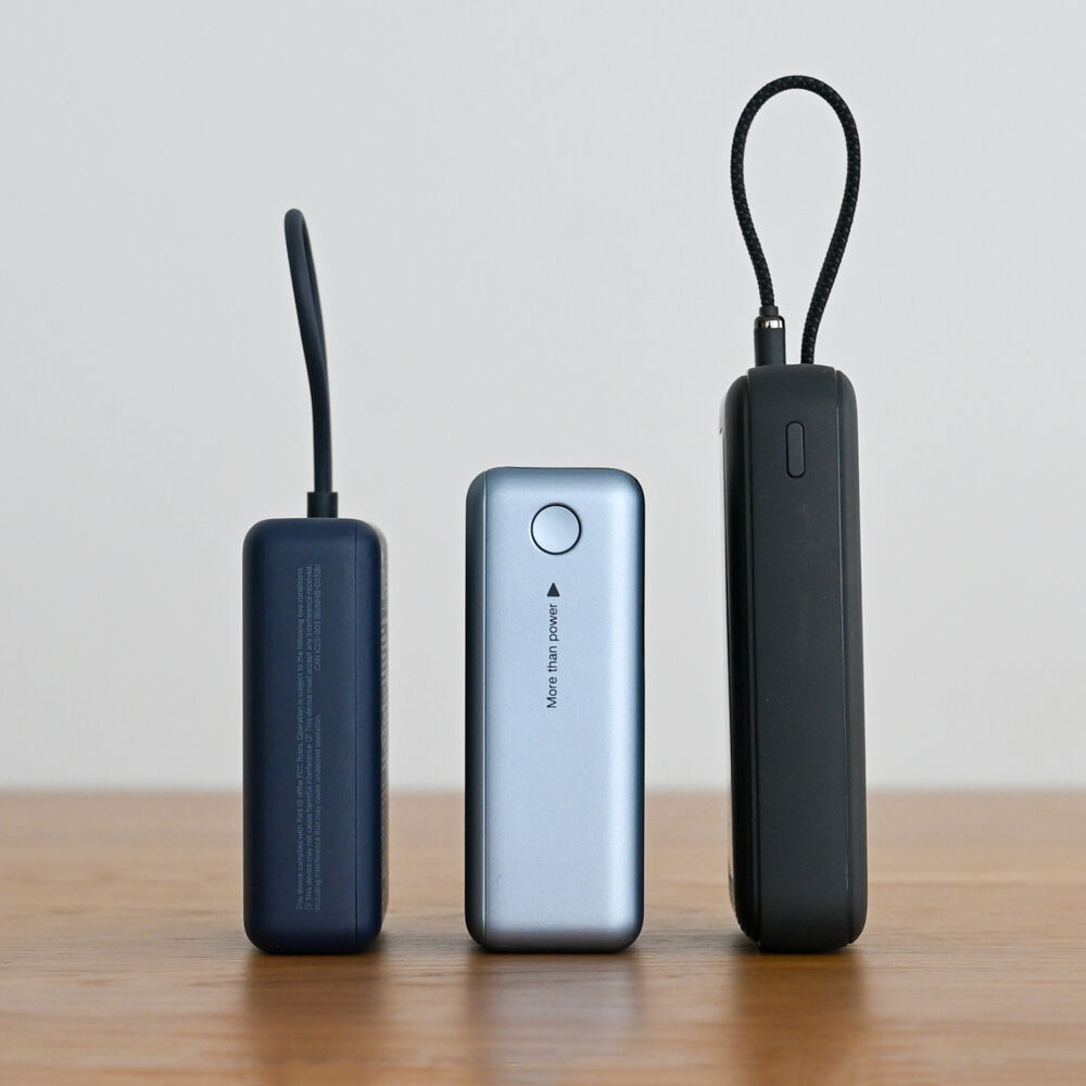 あとなんといってもコンパクト。XiaomiやAnkerの同クラスと比べても、出力では本機が勝るにもかかわらず、比較的がんばって抑えているのが分かります。