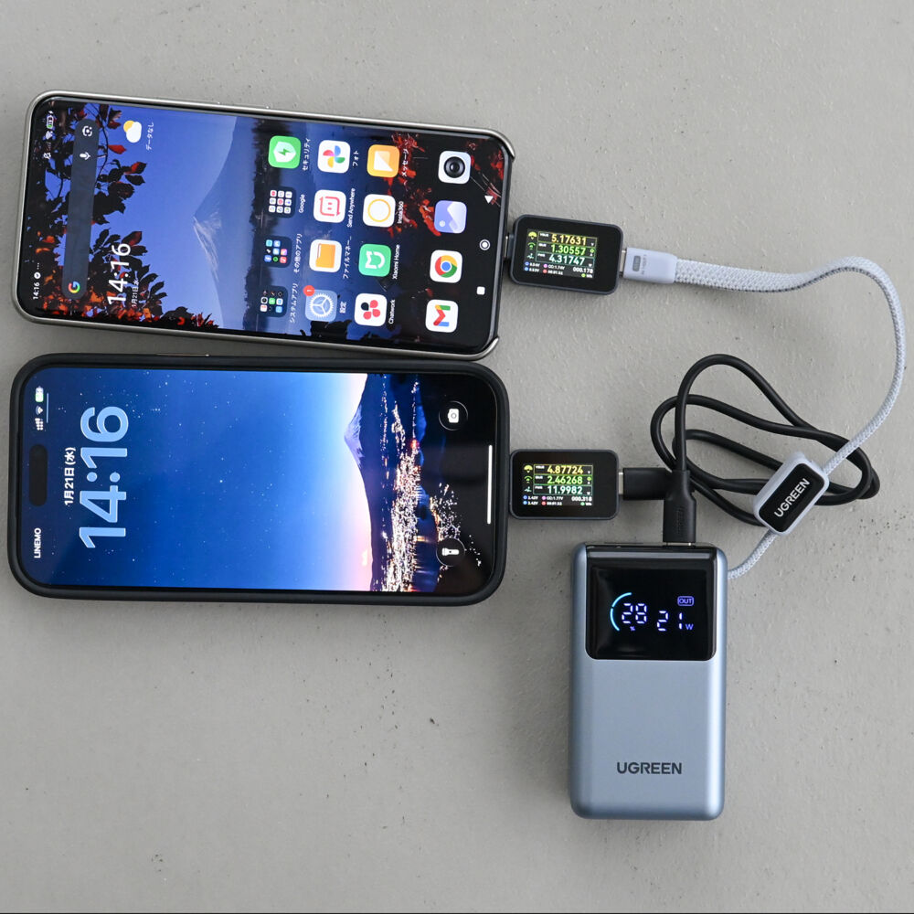 USB-Aポート側の出力は控えめですが、スマホの充電に適しています。