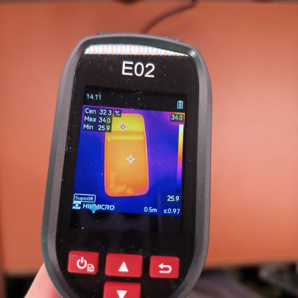 充電後30分経過時点でなんと約33℃。他のモデルはよくても30℃台後半、なかには40℃を超えるものもめずらしくない中、頭ひとつ抜けていました。
