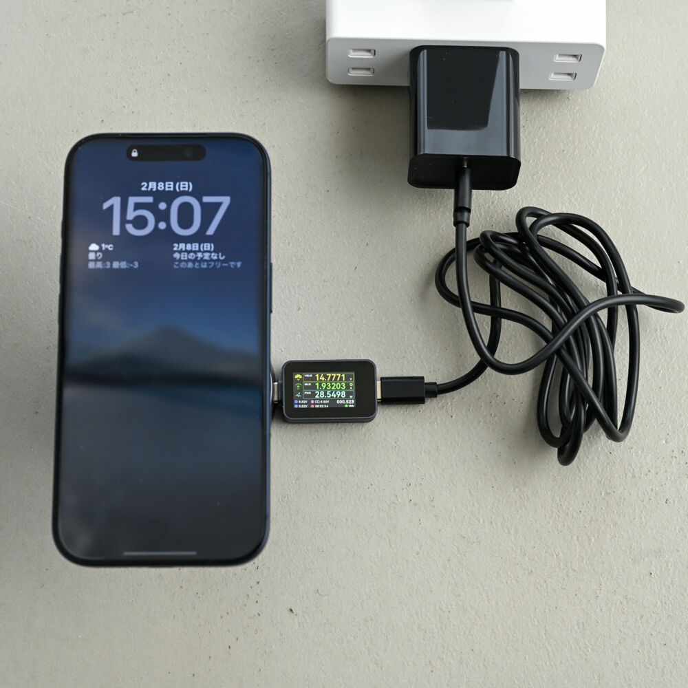 iPhone 17 Pro Maxを実際に計測したところ、なんと25W以上を記録していました。もはや有線並み。