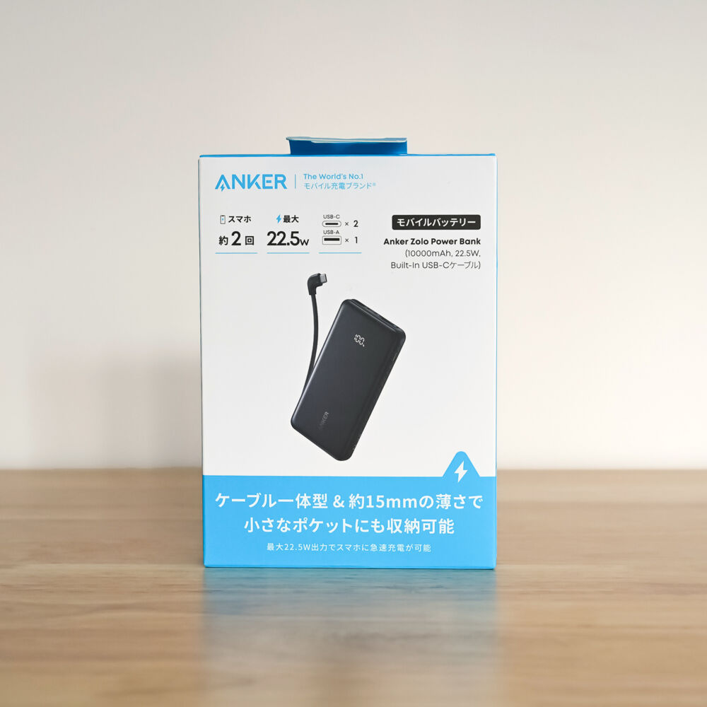 そこで本記事はAnker Zolo Power Bank (10000mAh, 22.5W, Built-In USB-Cケーブル)をレビューしていきます。