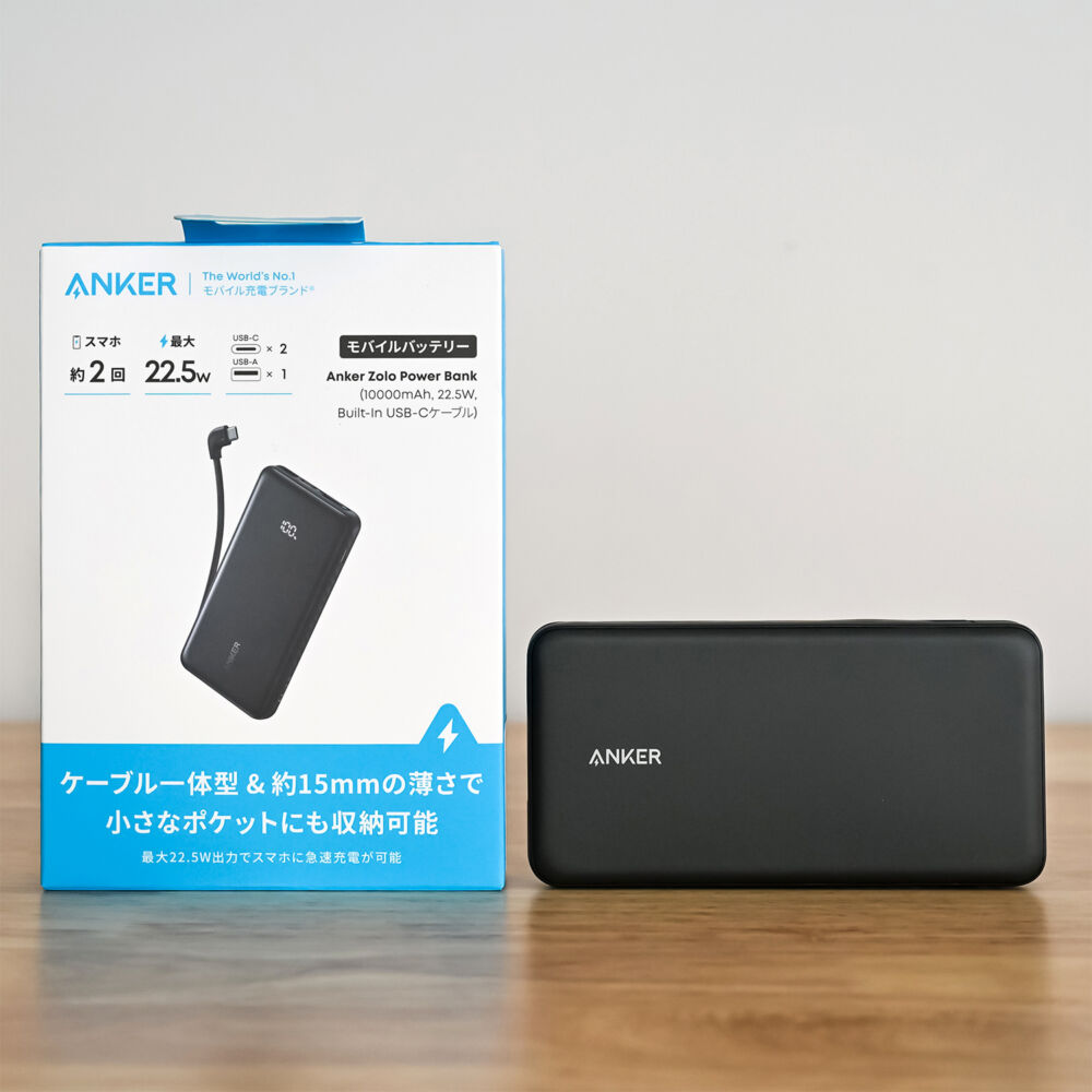 本記事はAnker Zolo Power Bank (10000mAh, 22.5W, Built-In USB-Cケーブル)をレビューしました。