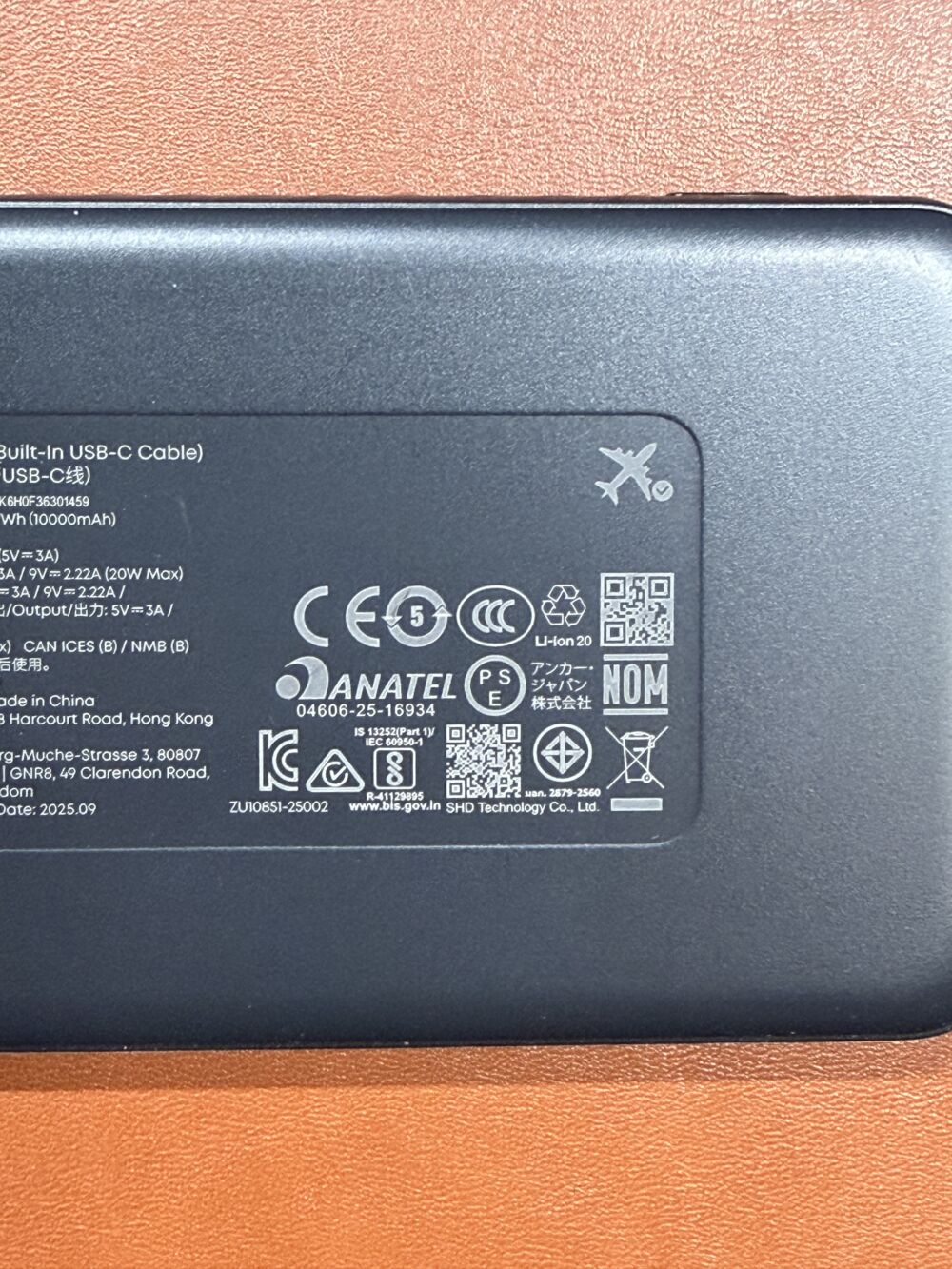 Anker Zoloシリーズはわりとそうなんですが、本機もうれしい「3C認証」付き。僕も実際体験したんですが、このマークないと、中国の国内線でマジ没収されますからね…。